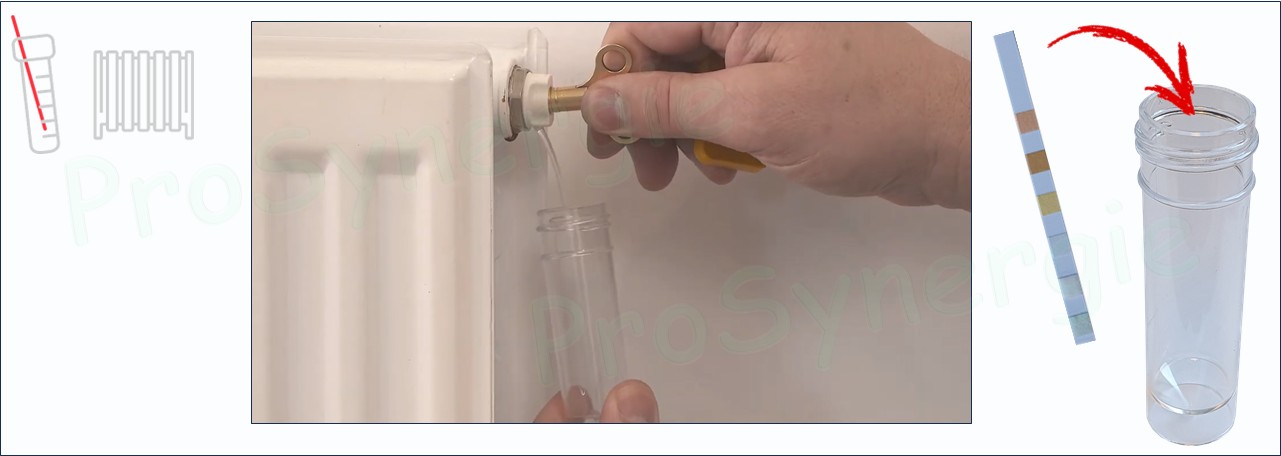 Prélever dans le tube une petite quantité d'eau du circuit de chauffage, par exemple au niveau de la purge d'un des radiateurs.