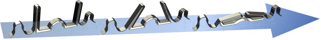Avec le procédé de fabrication, les deux feuillards inox sont agrafés et sertis simultanément par le mécanisme industriel qui va construire ainsi le tube en continu, lisse en intérieur, et de façon spiralée ( partie extérieure ).
