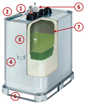 - Figure 3 n° (rep. 7) : Traitement anti-odeurs SMP ; La cuve intérieure en PEHD (Lupolen 4261 A ou Hostalen GM 7745) est traitée avec une couche protectrice qui empêche l’infiltration du gazole, et par conséquent, les mauvaises odeurs. Ce procédé de SCHÜTZ est breveté « traitement SMP », et est signé par le sceau de qualité PROOFED BARRIER® de l'Institut Fraunhofer de Freising (certification auditée en permanence).
