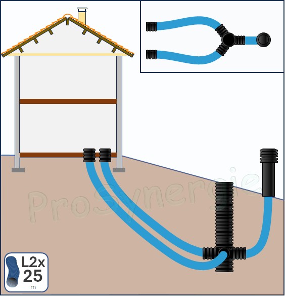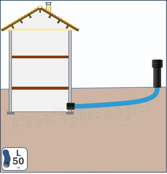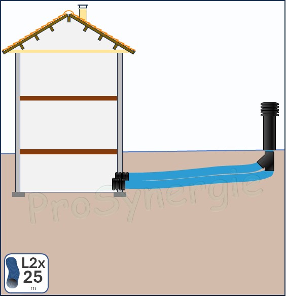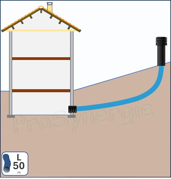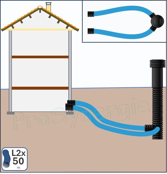 Installations puits canadiens prévus pour un renouvellement d'air de 300 m3/h