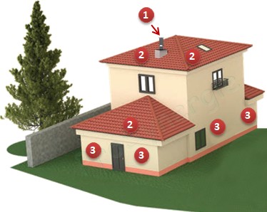 ![]() | Débouché : 1 : Sur souche existante 2 : Sur toiture 3 : Murale |