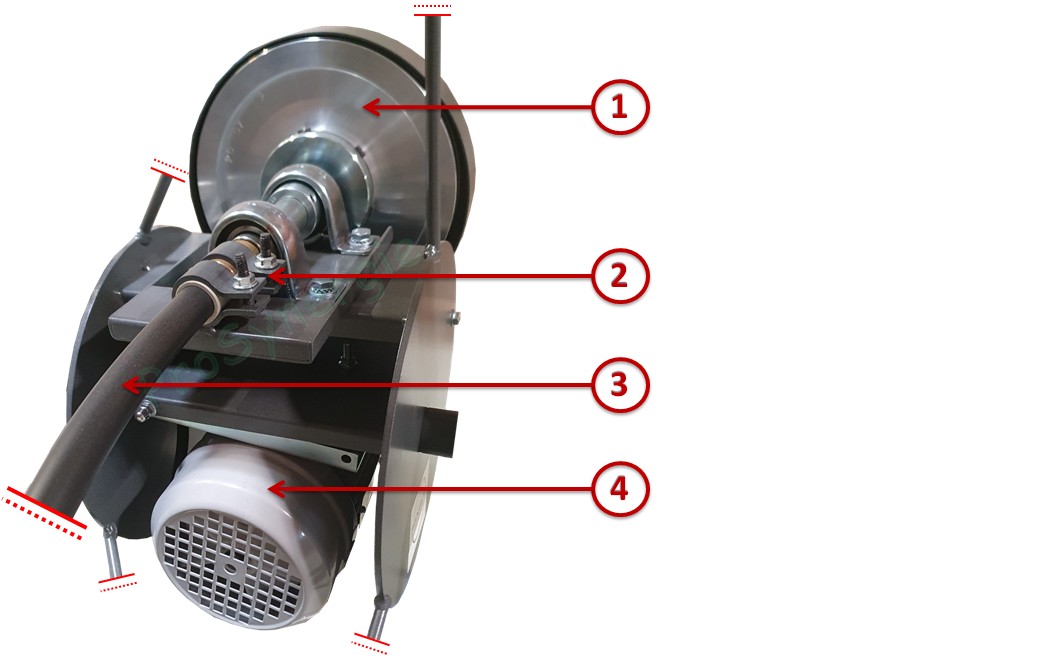 - Figure 1 n° (rep. 2) : Roue avec 15 m de câble rotatif