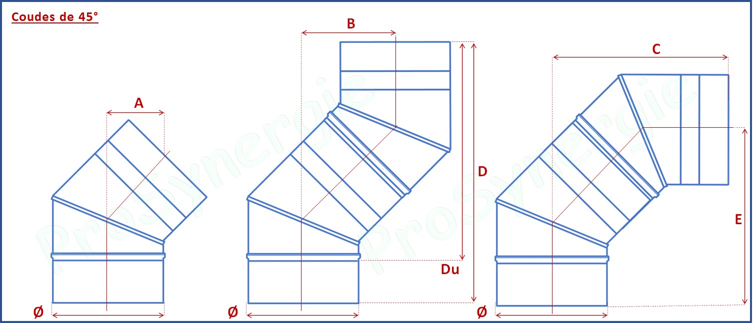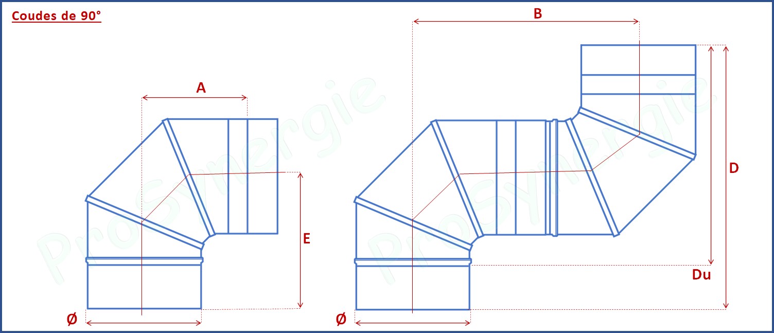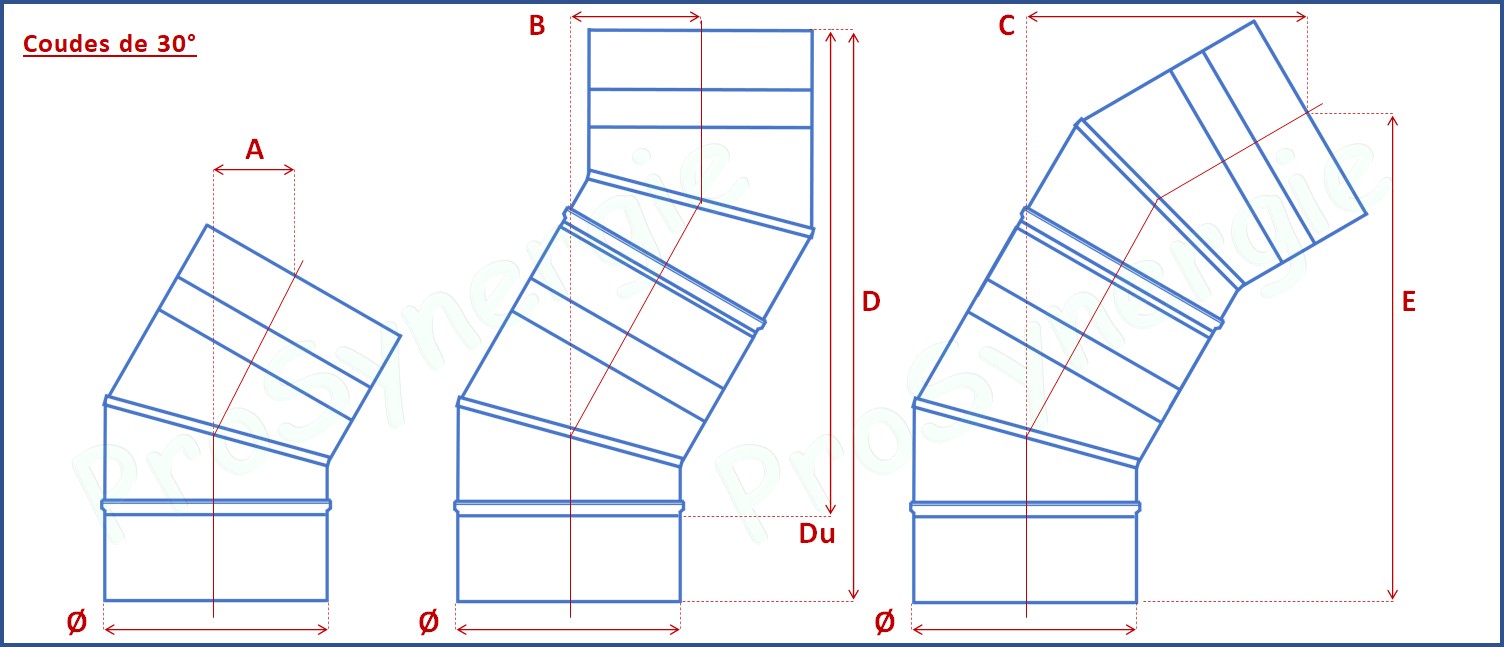 Côtes des différents éléments de conduit de fumée émaillé et calcul des dévoiements